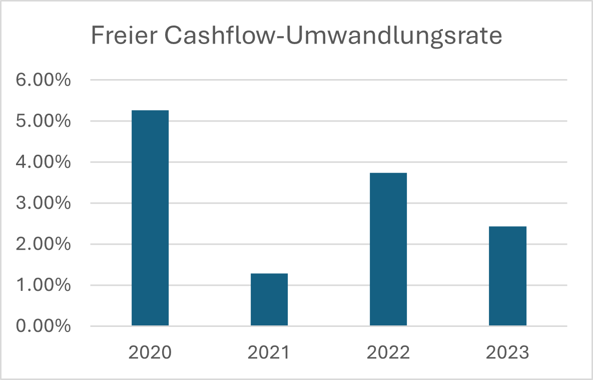 | Freier Cashflow-Umwandlungsrate | 5.27% | 1.29% | 3.74% | 2.43% |