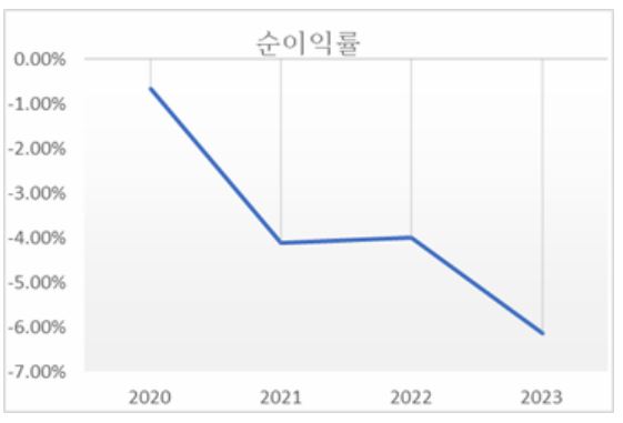 | 순이익률 | -0.67% | -4.12% | -3.99% | -6.15% |