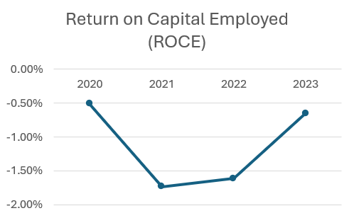 | Return on Capital Employed (ROCE) | -0.51% | -1.73% | -1.61% | -0.65% |
